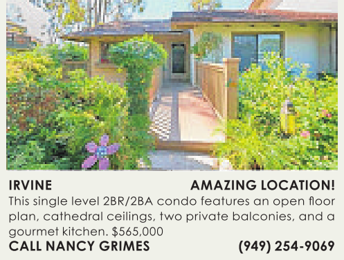 plan, cathedral ceilings, twoprivate balconies, and agourmet kitchen. $565,000 CALL NANCY GRIMES (949) 254-9069