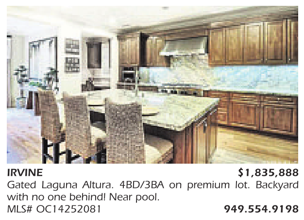 IRVINE $1,835,888 Gated Laguna Altura. 4BD/3BA on premium lot. Backyard with no one behind! Near pool. MLS# OC14252081 949.554.9198