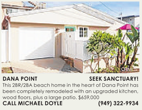 This 2BR/2BA beach home in the heart of Dana Point has been completely remodeled with an upgraded kitchen, wood floors, plus alarge patio. $659,000 CALL MICHAEL DOYLE (949) 322-9934