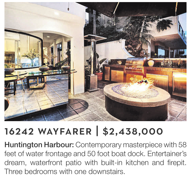Huntington Harbour: Contemporary masterpiece with 58 feet of water frontage and 50 foot boat dock. Entertainer’s dream, waterfront patio with built-in kitchen and firepit. Three bedrooms with one downstairs.