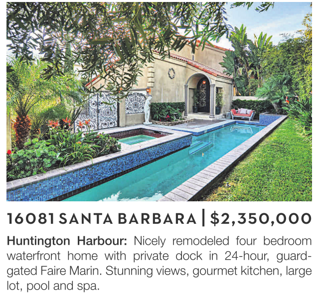 Huntington Harbour: Nicely remodeled four bedroom waterfront home with private dock in 24-hour, guardgated Faire Marin. Stunning views, gourmet kitchen, large lot, pool and spa.