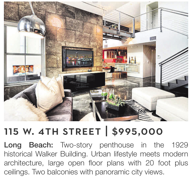 Long Beach: Two-story penthouse in the 1929 historical Walker Building. Urban lifestyle meets modern architecture, large open floor plans with 20 foot plus ceilings. Two balconies with panoramic city views.