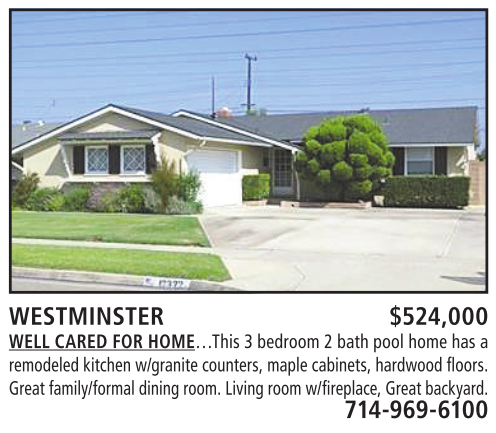 WESTMINSTER $524,000 WELL CARED FOR HOME…This 3bedroom 2bath pool home has a