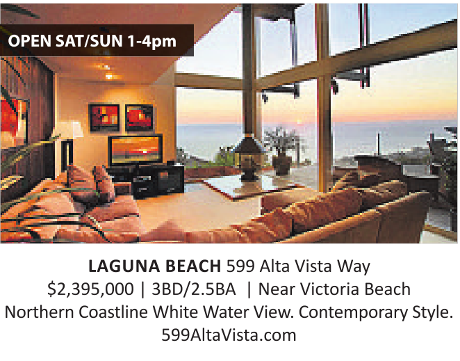 LAGUNA BEACH 599 Alta Vista Way $2,395,000 | 3BD/2.5BA | Near Victoria Beach Northern Coastline White Water View. Contemporary Style.