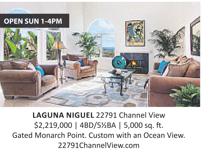 LAGUNA NIGUEL 22791 Channel View Gated Monarch Point. Custom with an Ocean View.