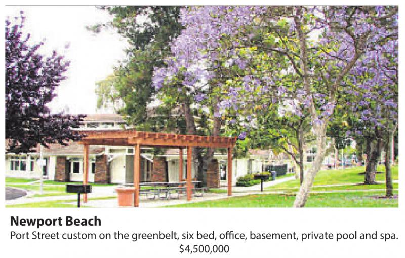 Newport Beach Port Street custom on the greenbelt, six bed, office, basement, private pool and spa.