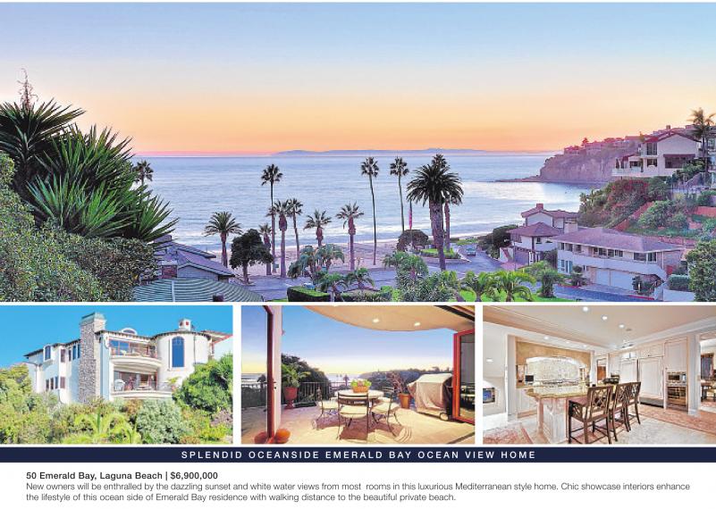 S P L E N D I D O C E A N S I D E E M E R A L D B AY O C E A N V I E W H O M E 50 Emerald Bay, Laguna Beach | $6,900,000 New owners will be enthralled by the dazzling sunset and white water views from most rooms in this luxurious Mediterranean style home. Chic showcase interiors enhance the lifestyle of this ocean side of Emerald Bay residence with walking distance to the beautiful private beach. See also