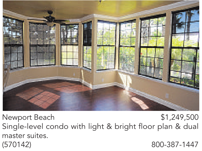 Newport Beach $1,249,500 Single-level condo with light & bright floor plan & dual master suites. (570142) 800-387-1447