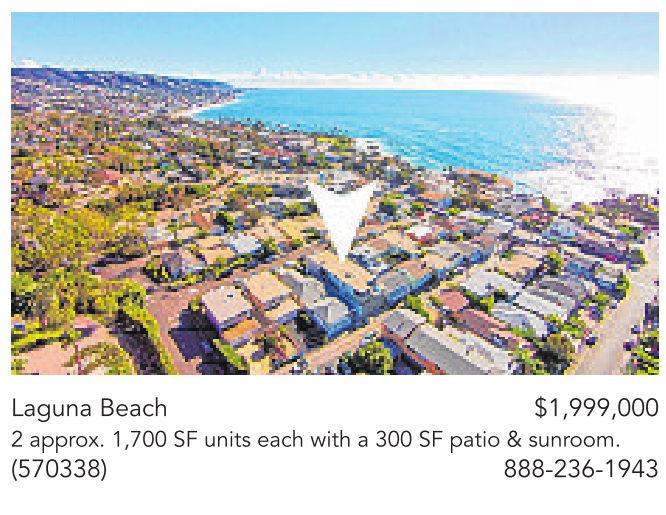 Laguna Beach $1,999,000 2 approx. 1,700 SF units each with a 300 SF patio & sunroom. (570338) 888-236-1943