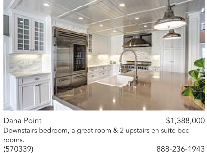 Dana Point $1,388,000 Downstairs bedroom, a great room & 2 upstairs en suite bedrooms. (570339) 888-236-1943