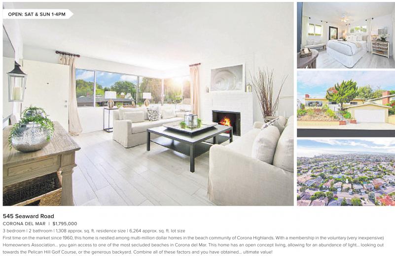 CORONA DEL MAR | $1,795,000 3 bedroom | 2 bathroom | 1,308 approx. sq. ft. residence size | 6,264 approx. sq. ft. lot size Firsttimeonthe marketsince 1960, thishome is nestled among multi-milliondollar homes in the beach community of CoronaHighlands.Withamembershipinthe voluntary (very inexpensive) Homeowners Association… you gain access to one of the most secluded beaches in Corona del Mar. This home has an open concept living, allowing for an abundance of light… looking out towards the Pelican Hill Golf Course, or the generous backyard. Combine all of these factors and you have obtained… ultimate value!