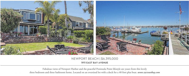 Fabulous views of Newport Harbor and the peaceful Peninsula Point lifestyle are yours from this lovely three bedroom and three bathroom home. Located on an oversized lot with a dock for a 40 foot plus boat. www.1911eastbay.com