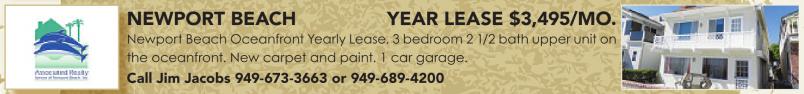 Newport Beach Oceanfront Yearly Lease. 3 bedroom 2 1/2 bath upper unit on