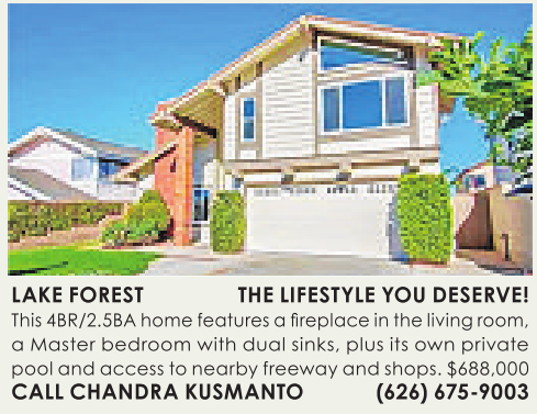 pool and access to nearby freeway and shops. $688,000 CALL CHANDRA KUSMANTO (626) 675-9003
