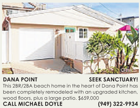 This 2BR/2BA beach home in the heart of Dana Point has been completely remodeled with anupgraded kitchen, wood floors, plus alarge patio. $659,000 CALL MICHAEL DOYLE (949) 322-9934