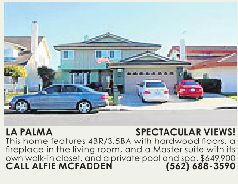 own walk-incloset, and aprivate pool and spa. $649,900 CALL ALFIE MCFADDEN (562) 688-3590