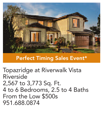 Topazridge at Riverwalk Vista Riverside 2,567 to 3,773 Sq. Ft. 4to6Bedrooms, 2.5 to4Baths From the Low $500s 951.688.0874