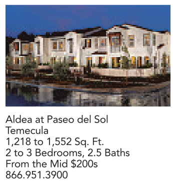 Aldea at Paseo del Sol Temecula 1,218 to 1,552 Sq. Ft. 2to3Bedrooms, 2.5 Baths From the Mid $200s 866.951.3900