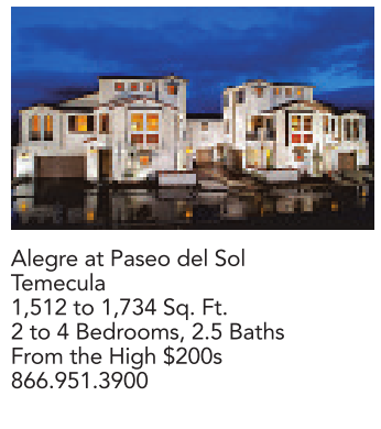 Alegre atPaseo del Sol Temecula 1,512 to 1,734 Sq. Ft. 2to4Bedrooms, 2.5 Baths From the High $200s 866.951.3900