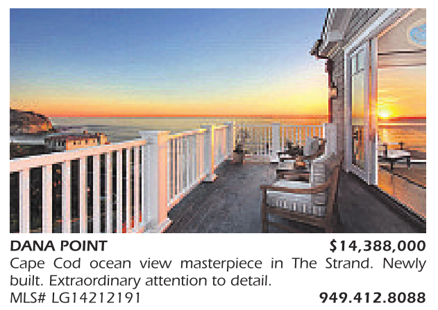 DANA POINT $14,388,000 Cape Cod ocean view masterpiece in The Strand. Newly built. Extraordinary attention to detail. MLS# LG14212191 949.412.8088