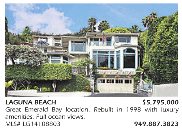 LAGUNA BEACH $5,795,000 Great Emerald Bay location. Rebuilt in 1998 with luxury amenities. Full ocean views. MLS# LG14108803 949.887.3823