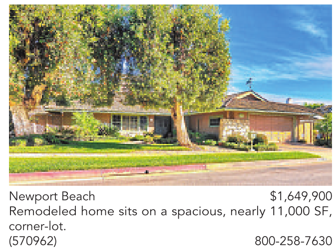 Newport Beach $1,649,900 Remodeled home sits on a spacious, nearly 11,000 SF, corner-lot. (570962) 800-258-7630