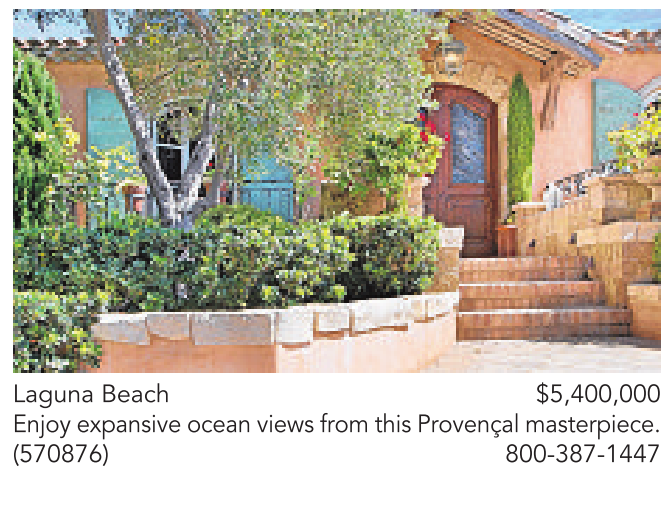 Laguna Beach $5,400,000 Enjoy expansive ocean views from this Provençal masterpiece. (570876) 800-387-1447