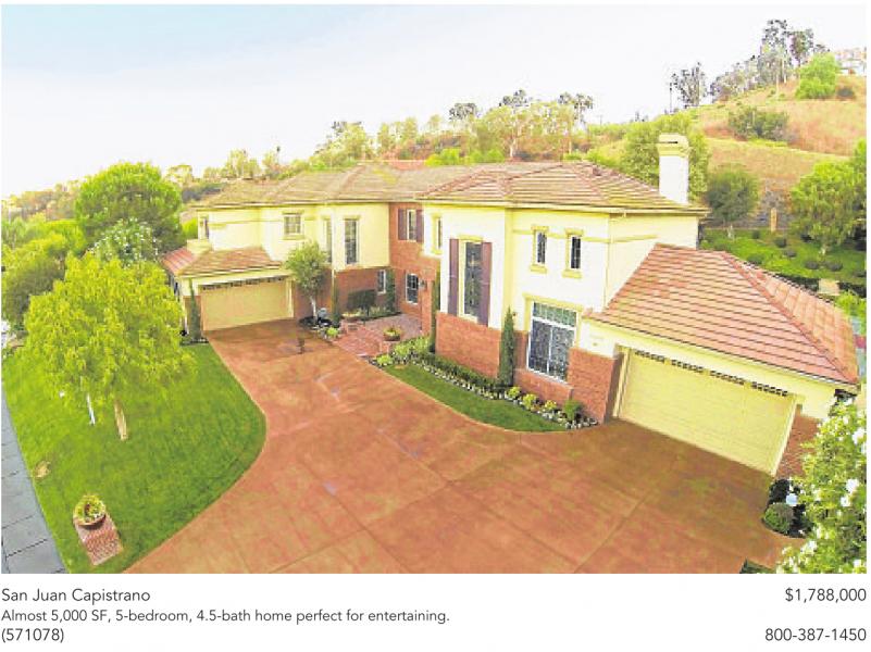 San Juan Capistrano $1,788,000 Almost 5,000 SF, 5-bedroom, 4.5-bath home perfect for entertaining. (571078) 800-387-1450