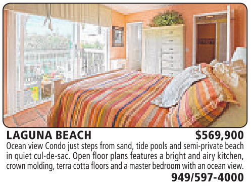 LAGUNA BEACH $569,900 Ocean view Condo just steps from sand, tide pools and semi-private beach in quiet cul-de-sac. Open floor plans features abright and airy kitchen, crown molding,terra cottafloors andamasterbedroomwithanoceanview.
