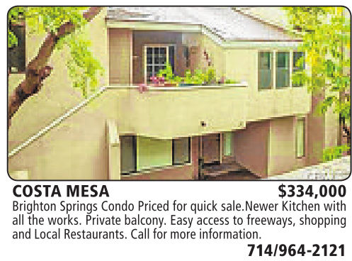 COSTA MESA $334,000 Brighton Springs Condo Priced for quick sale.Newer Kitchen with all the works. Private balcony. Easy access to freeways, shopping and Local Restaurants. Call for more information.