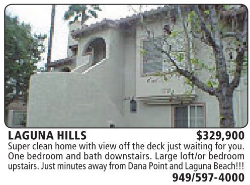 LAGUNA HILLS $329,900 Supercleanhome with view offthe deckjust waitingfor you. One bedroom and bath downstairs. Large loft/or bedroom upstairs. Just minutesawayfrom DanaPoint andLagunaBeach!!!