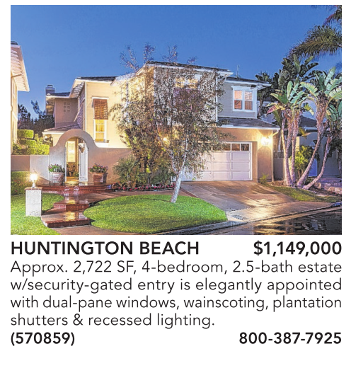 HUNTINGTON BEACH $1,149,000 Approx. 2,722 SF, 4-bedroom, 2.5-bath estate w/security-gated entry is elegantly appointed with dual-panewindows,wainscoting,plantation shutters & recessed lighting. (570859) 800-387-7925