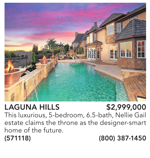 LAGUNA HILLS $2,999,000 This luxurious, 5-bedroom,6.5-bath, NellieGail estate claims the throne as the designer-smart home of the future. (571118) (800) 387-1450