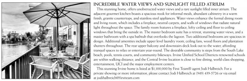 This stunning Irvine home is listed at $1,100,000 by First Team® agent Jodi Halbreich. For a private showing or more information, please contact Jodi Halbreich at (949) 439-5726 or via email at jodihalbreich@firstteam.com