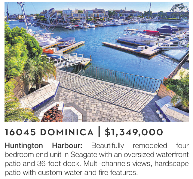 Huntington Harbour: Beautifully remodeled four bedroom end unit in Seagate with an oversized waterfront patio and 36-foot dock. Multi-channels views, hardscape patio with custom water and fire features.