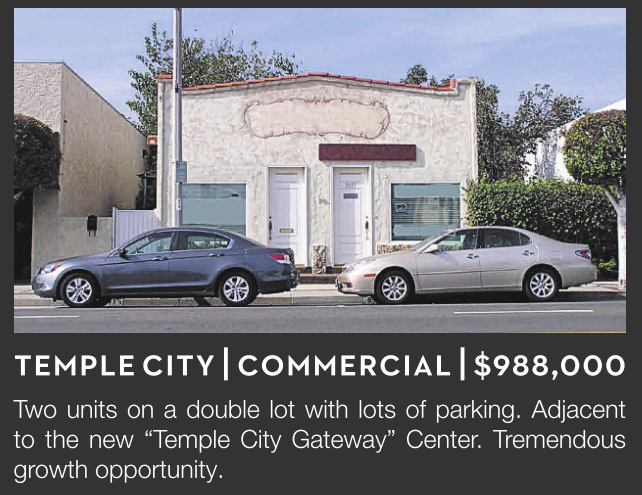 Two units on a double lot with lots of parking. Adjacent to the new “Temple City Gateway” Center. Tremendous growth opportunity.