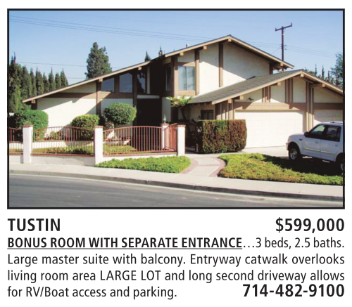 TUSTIN $599,000 BONUSROOMWITH SEPARATE ENTRANCE…3 beds,2.5 baths.