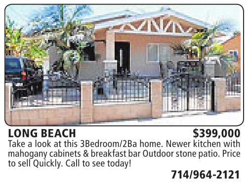 LONG BEACH $399,000 Take alook atthis 3Bedroom/2Ba home. Newer kitchen with mahogany cabinets&breakfastbar Outdoorstone patio. Price to sell Quickly. Call to see today!