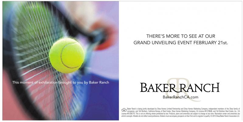 Baker Ranch isbeing jointly developed by Shea Homes Limited Partnership and Shea Homes Marketing Company, independent members of the Shea family of companies, and Toll Brothers. California Bureau ofReal Estate, Shea Homes Marketing Company, CALicense #01378646, and Toll Brothers Real Estate, Inc., CA License #01206770. This is not an offering where prohibited by law.Products, plans and amenities aresubject to change at any time. Recreation center and amenitiesare artist’sconcepts.Modelsdonot reflectracial preference. Brokersmust accompany prospectsontheir first visit to register to qualify.©2015 Shea/Baker Ranch Associates LLC.