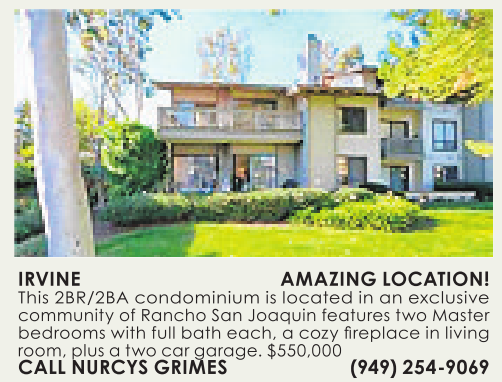 room, plus atwo car garage. $550,000 CALL NURCYS GRIMES (949) 254-9069
