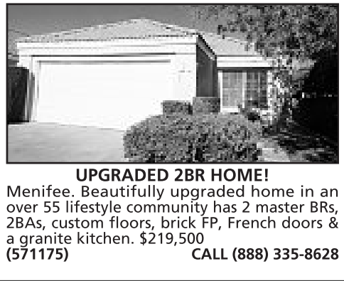 2BAs, custom floors, brick FP, French doors &a granite kitchen. $219,500 (571175) CALL (888) 335-8628