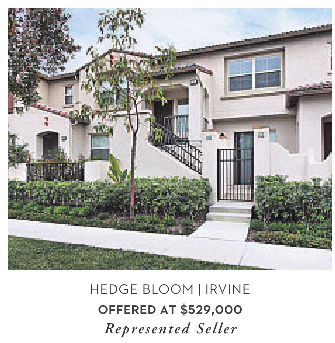 HEDGE BLOOM | IRVINE OFFERED AT $529,000 Represented Seller