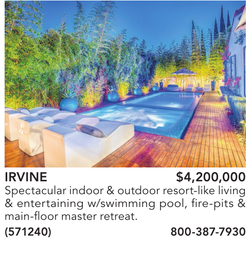 IRVINE $4,200,000 Spectacular indoor & outdoor resort-like living & entertaining w/swimming pool, fire-pits & main-floor master retreat.