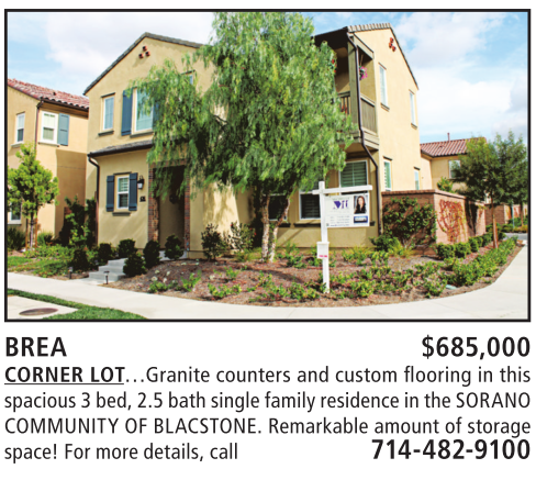 BREA $685,000 CORNER LOT…Granite counters and custom flooring in this