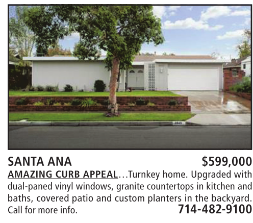 dual-paned vinyl windows, granite countertops in kitchen and baths, covered patio and custom planters in the backyard. Call formore info. 714-482-9100