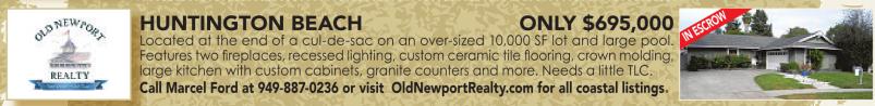 Call Marcel Ford at 949-887-0236 or visit OldNewportRealty.com for all coastal listings.