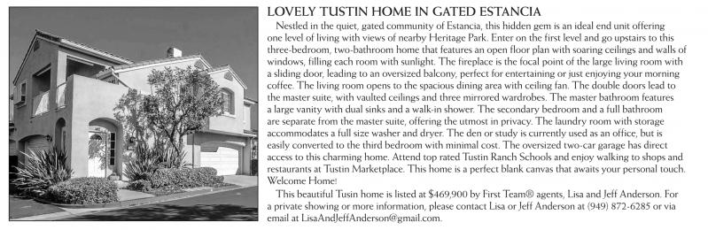 This beautiful Tusin home is listed at $469,900 by First Team® agents, Lisa and Jeff Anderson. For a private showing or more information, please contact Lisa or Jeff Anderson at (949) 872-6285 or via email at LisaAndJeffAnderson@gmail.com.