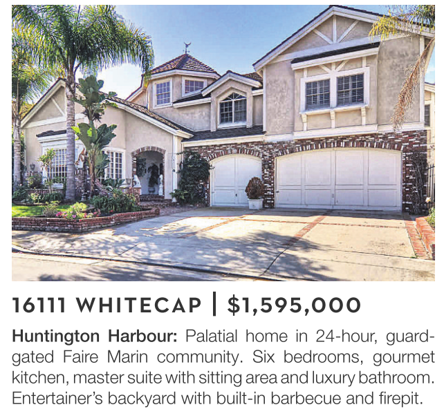 Huntington Harbour: Palatial home in 24-hour, guardgated Faire Marin community. Six bedrooms, gourmet kitchen, master suite with sitting area and luxury bathroom. Entertainer’s backyard with built-in barbecue and firepit.