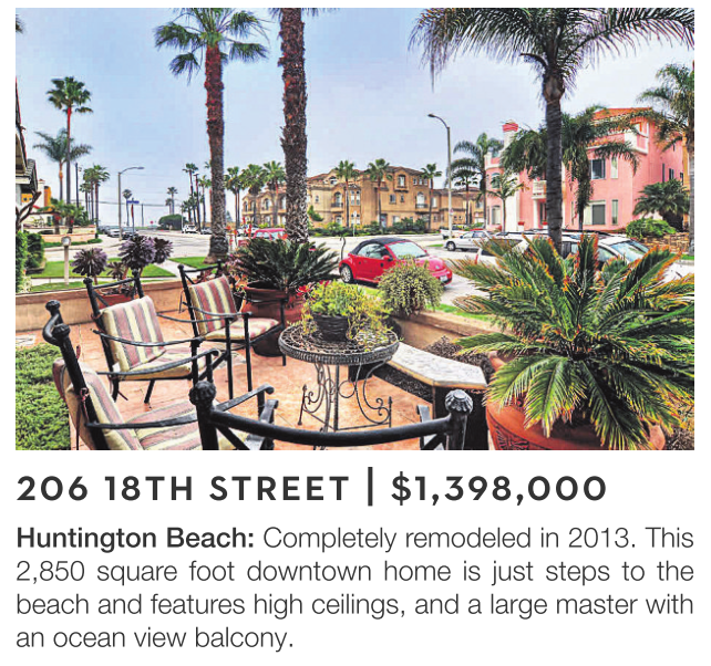 Huntington Beach: Completely remodeled in 2013. This 2,850 square foot downtown home is just steps to the beach and features high ceilings, and a large master with an ocean view balcony.