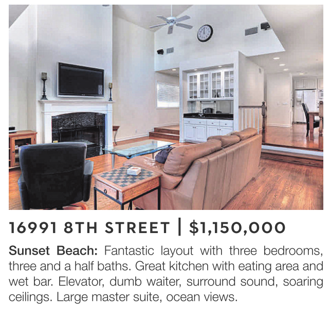 Sunset Beach: Fantastic layout with three bedrooms, three and a half baths. Great kitchen with eating area and wet bar. Elevator, dumb waiter, surround sound, soaring ceilings. Large master suite, ocean views.